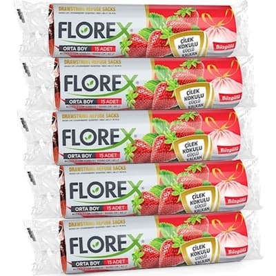 Florex Büzgülü Çilek Kokulu Orta Boy Çöp Poşeti 55X60 cm