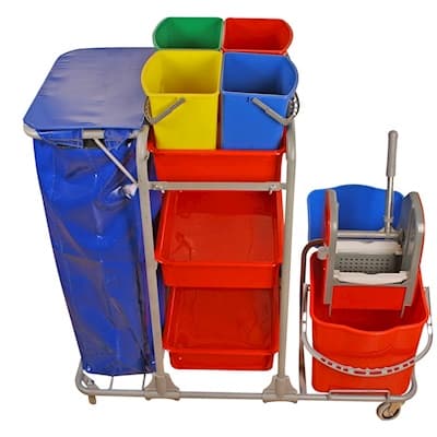 PLASTİK KAT HİZMET ARABASI DOLAPLI-BRANDALI-TEMİZLİK SETLİ-4 KOVALI